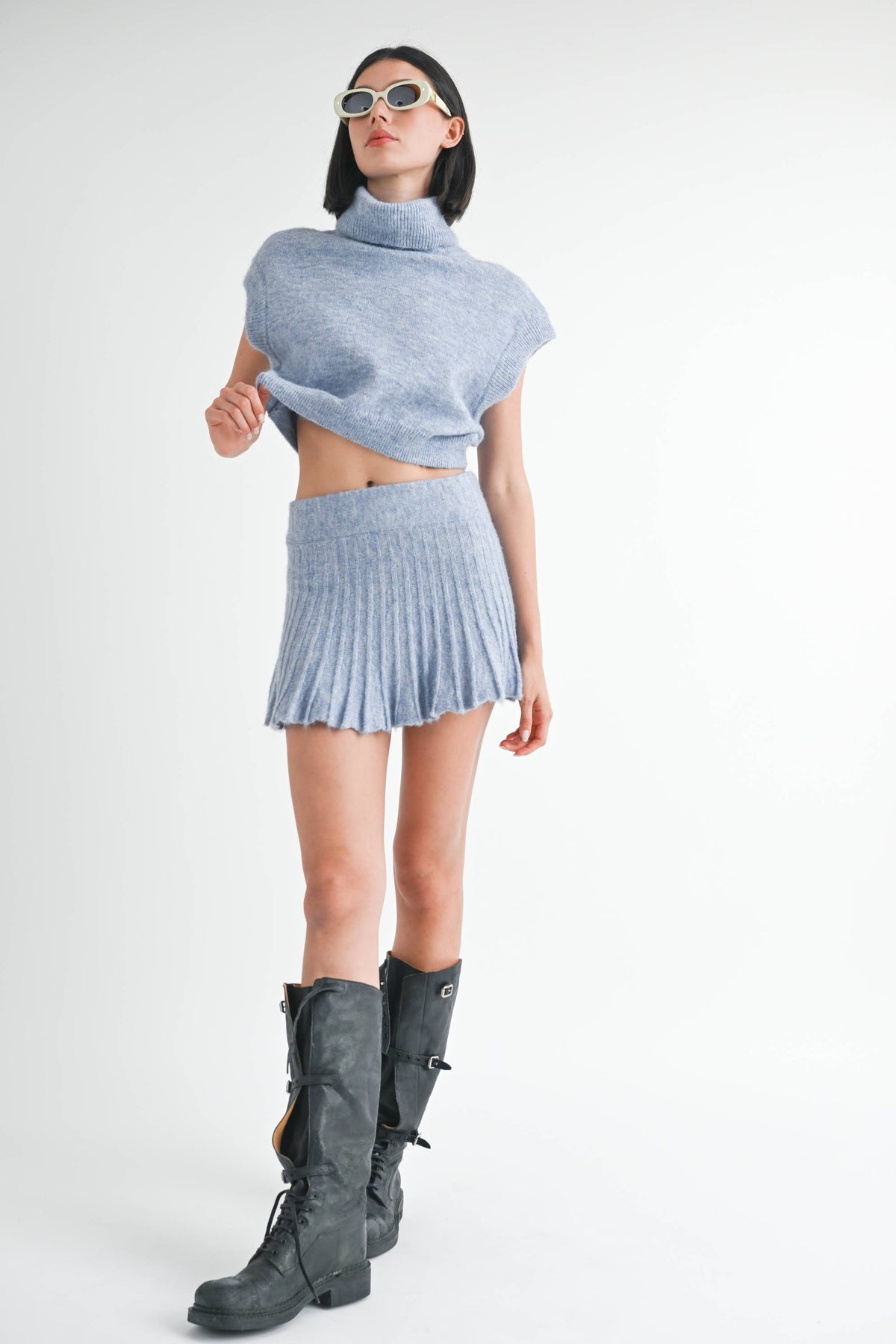 Fitting: True to Size Model wearing size S Length: Cropped Neckline: Turtle Sleeves: Cap Stretch: Yes